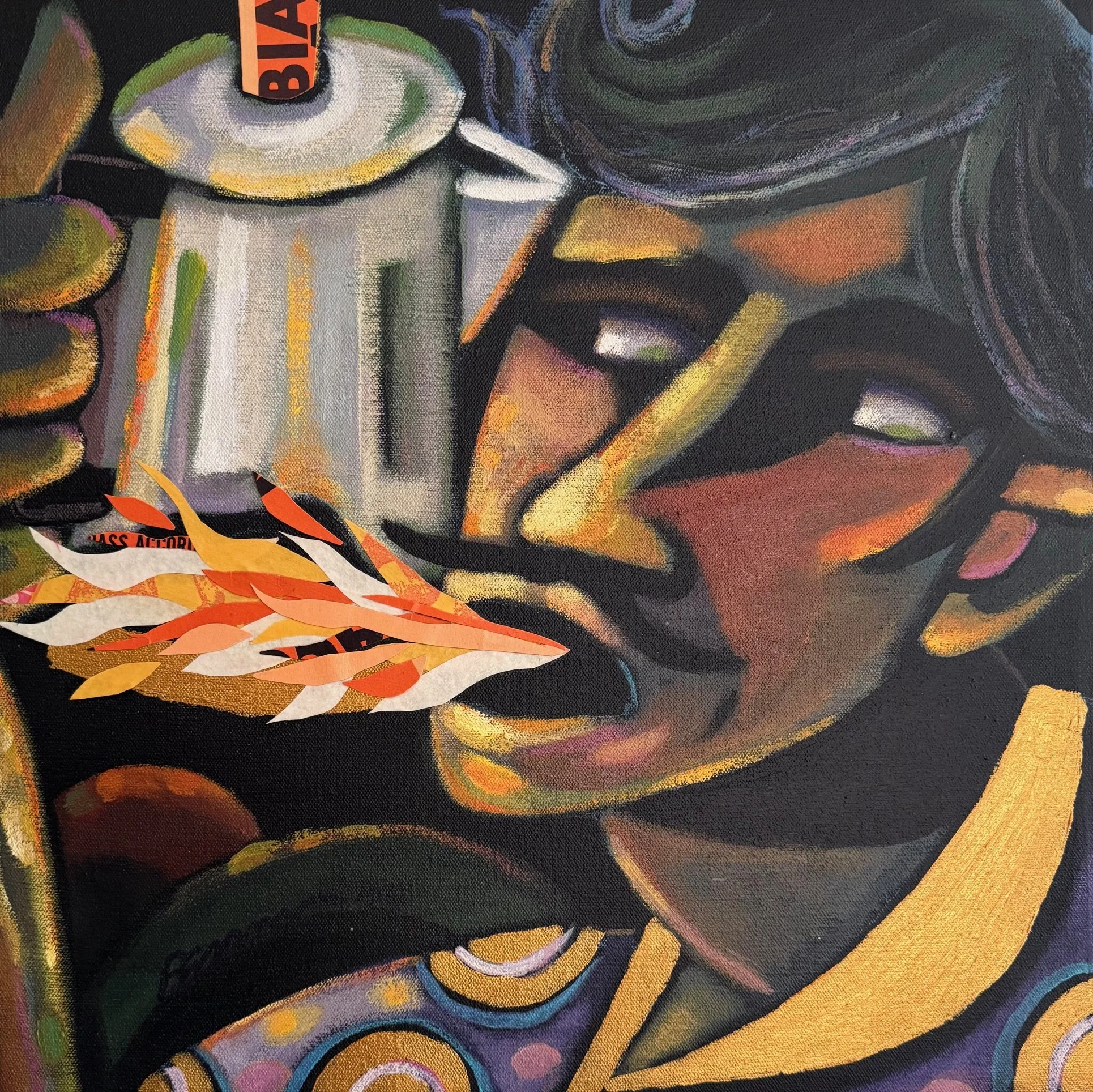 "Percolations and Musings of the Fire Eater" acrylic, mixed media