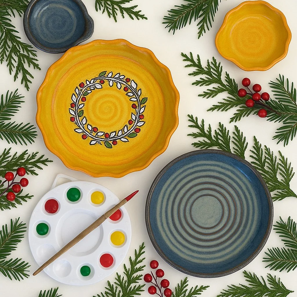 Add a handmade touch to your holiday table! In this fun, hands-on workshop, you’ll select a pie plate and matching spoon rest, then learn how to use colorful underglazes and decorative techniques to bring your own design to life. You’ll also make a set of custom pie weights to complete your baking set! Settle in, enjoy a treat, and take your time creating your unique pieces—perfect for holiday entertaining or gifting. Your finished works will be kiln-fired and ready for pickup the following week, just in time to share (or show off!) during the festive season.