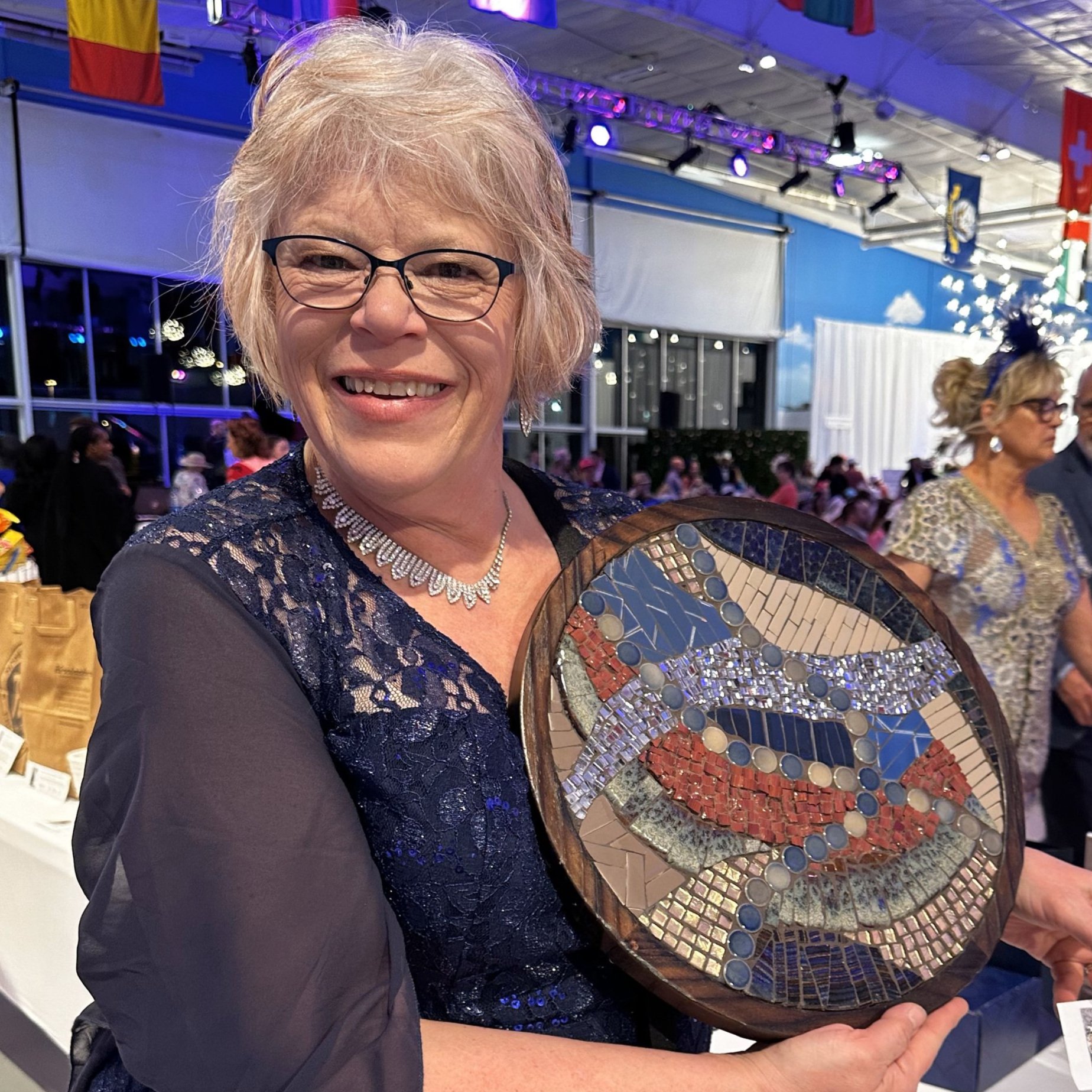 It was a great honor for her to be included in an exhibit in Southwestern Pennsylvania called “The Ruins.” A fellow mosaic artist is taking the ruins of a coal mine and filling them with history using mosaic art. Sherri met the artist Rachel Sager while attending a conference in Buffalo, New York, in the fall of 2023. Being invited to complete a piece with international artists was humbling and a great honor.